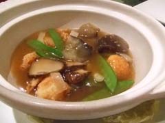 グランドメニューは100種を超え、 グランドメニューの脇に書いてある「料理長の特選メニュー」も頼めます。 芝海老のトーストなんて、タイ料理屋のメニューで見るものもある。 新宿のメニューにもあったかな?これ。 注文はメニューの順番通り、それぞれのカテゴリーから3、4品づつ選んでいくとコースらしくなります。 たいてい「フカヒレの姿煮」は1人1品でと説明されたときに人数分注文してしまうので、 だいたい前菜を食べながらフカヒレの姿煮を食べることになります。 おなかがすいているうちにぺろっと食べてしまうより、 もっとあとの方で味わって食べたいような気もします。 |