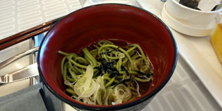 3人がお皿を持ってきたら、もう小さな四角いテーブルをはみ出してる。ドリンクも持ってきたら、食器がぶつかって倒しそう。