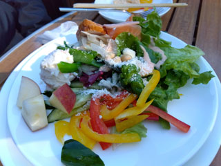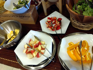 サラダバーはハム2種、カットフルーツ3種あり