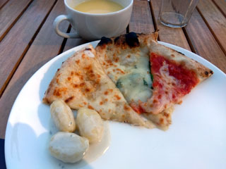 ピッツァは生地は分厚くないのにモチモチで美味しい