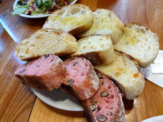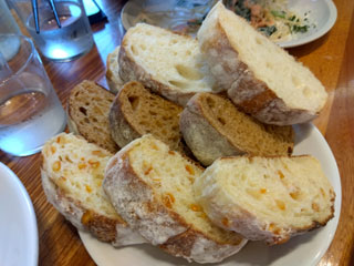 パンの盛り合わせが到着、3人で1人3切れづつ