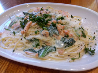 本日のパスタ 2:サーモンと青菜のクリームソース