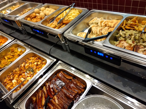 冷菜、煮物、焼き物、炒め物、揚げ物、蒸し物、ずらりと並んでる!