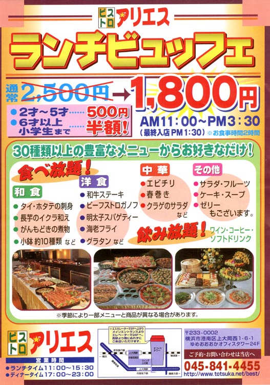 ビストロアリエスのランチタイムのチラシです。