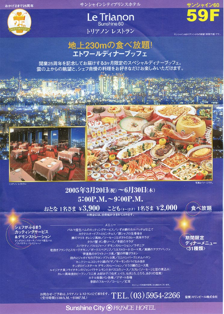 サンシャインシティ プリンスホテル レストラン トリアノン エトワールディナーブッフェ