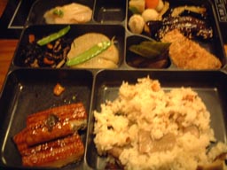 このくらい歩くのが平気な人だったら溜池山王や赤坂からも歩けちゃうね。 最初にお金を払って幕の内弁当の仕切りにご飯をつけてもらって受け取ったら ブッフェ形式で料理を取ります。お味噌汁は席に運ばれます。 ご飯は松茸ご飯か白飯か選べますが、私は せっかくなので(?)松茸ご飯を軽く寄そっていただきました。 うなぎ、お刺身、お芋さんの煮っころがし、ひじきの炒め煮、なすの揚げびたし、 おでん、うどん、お新香など和食が美味しい!かきフライ、鶏唐揚げ、サラダなど和食以外の メニューも若干あるのがうれしい。でもやっぱりここはうなぎだな~。 大将、感じいいし~ラブ♪ うな重おかずつきと考えたら安すぎる優良店です。混み合うのでゆっくり (-。-)y-゚゚゚出来ないのが難だなとスモーカーの同行者は申しておりました。 |