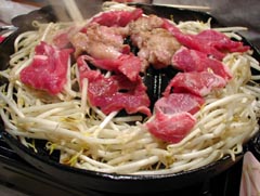 見るからに美味しいフレッシュで肉厚な生ラムです。野菜はモヤシだけでしたが主役が揃ったので文句ナシ。