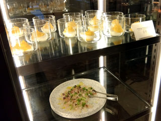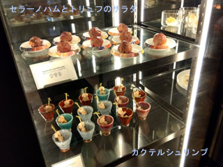 前菜の一部とデザートが高級そうな飾り棚に並んでいるけどこれ冷蔵庫じゃないよね!?