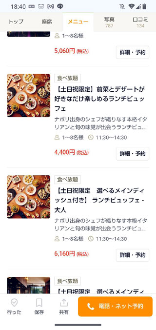 え?え?スマホで見たこの予約画面でビュッフェのみってやつのつもりで来たんだけど…(汗