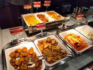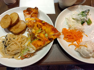 新しいシェーキーズだからもう最初からサラダバー、ドリンクバーのスペースが取ってあって、ポテト2種、パスタ2種の他ナチョス、タコミート、マカロニチーズとスペースが広め