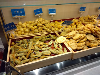 ①うどんをご注文頂きましたら、天ぷらなどのお料理をご自由にお取りください