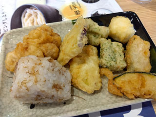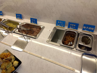 天ぷら、おにぎり、カレー、うどんの薬味などはビュッフェコーナーで取り放題