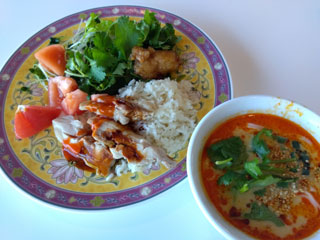 シンガポールチキンライス、ラクサヌードル、カレーライスと